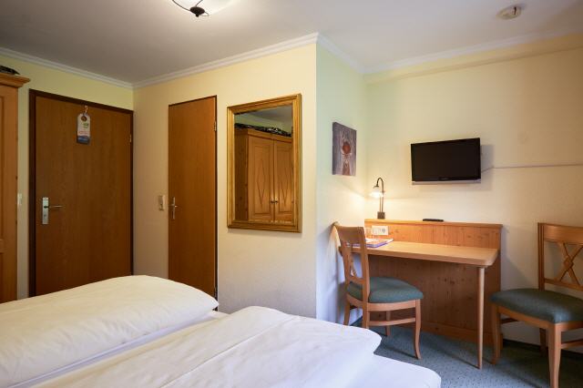 Zimmer 1, DZ Südwestbalkon, Dusche, Etagen WC, 14m²; |